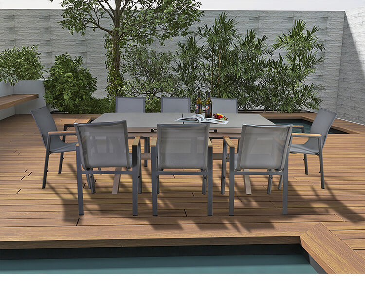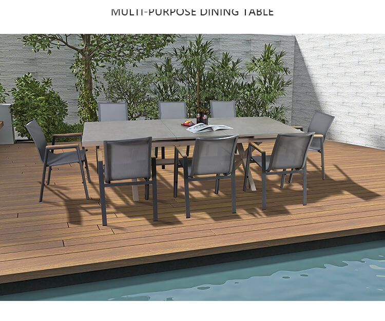 відкритий обідній набір 8-місні меблі для заднього двору готельний дворик розсувний садовий обідній стіл і стілець